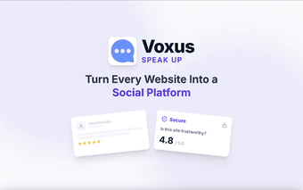 Voxus är en innovativ webbläsartillägg som möjliggör för användare att kommentera och betygsätta vilken webbsida som helst. Med Voxus kan du enkelt uttrycka dina tankar, ge feedback och ställa frågor på nyhetsartiklar, företagswebbplatser och videor, vilket skapar en levande gemenskap på nätet. Tillägget prioriterar säkerhet och äkta mänsklig interaktion, vilket gör att användare kan delta i diskussioner utan risk för spam eller botar.